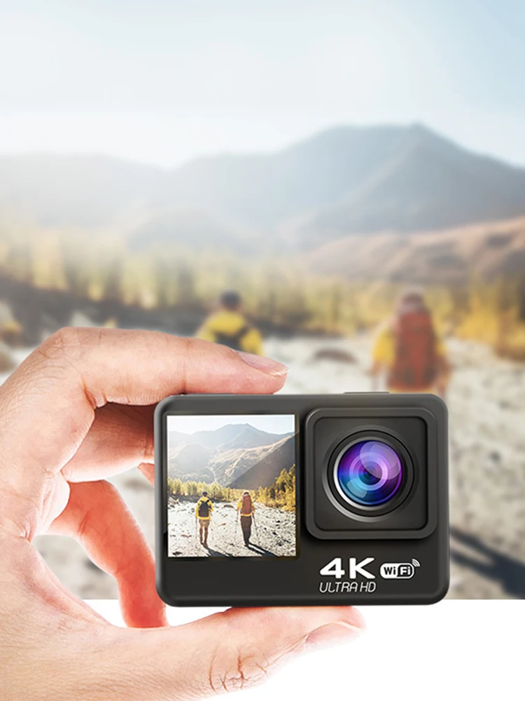 4K UHD Action Camera Waterproof 2.0 Inch IPS Screen Bicycle Video Recording Camera Anti-Shake Dual Screen Display 120 Wide Angle