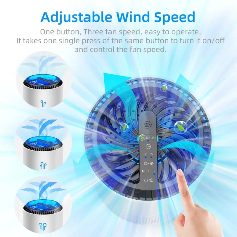 Compared to other air purifiers, JH01 combines HEPA Filter and Light to improve its purification performance. It can effectively purify the air by filtering particles as small as 0.3 microns and air pollution of PM 2.5. Most tiny objects indoor can be eliminated quietly. Less energy-consuming, adjustable wind speed, pleasant aroma added, and easy-to-replace filter, together make the product more durable and competitive. Designed for large spaces, the ALROCKET HEPA Air Purifier effortlessly transforms your room into a sanctuary of pure air. Say goodbye to dust, pet dander, and unwanted odors that can compromise the quality of your living or working space.