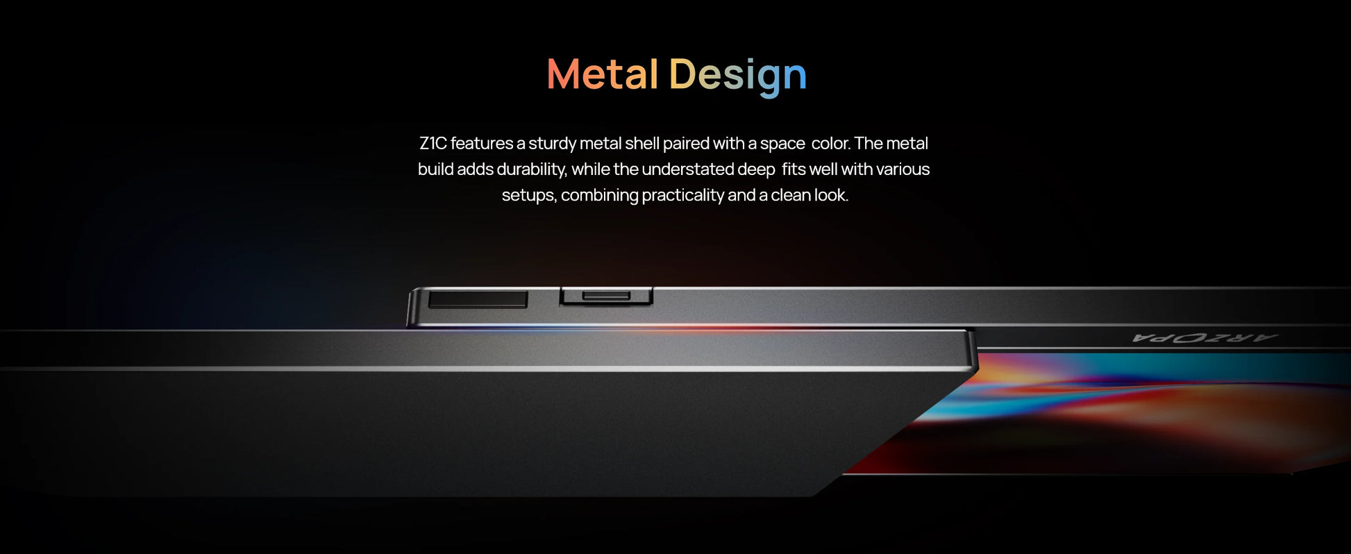 Z1C features a sturdy metal shell paired with a space color. The metal build adds durability,