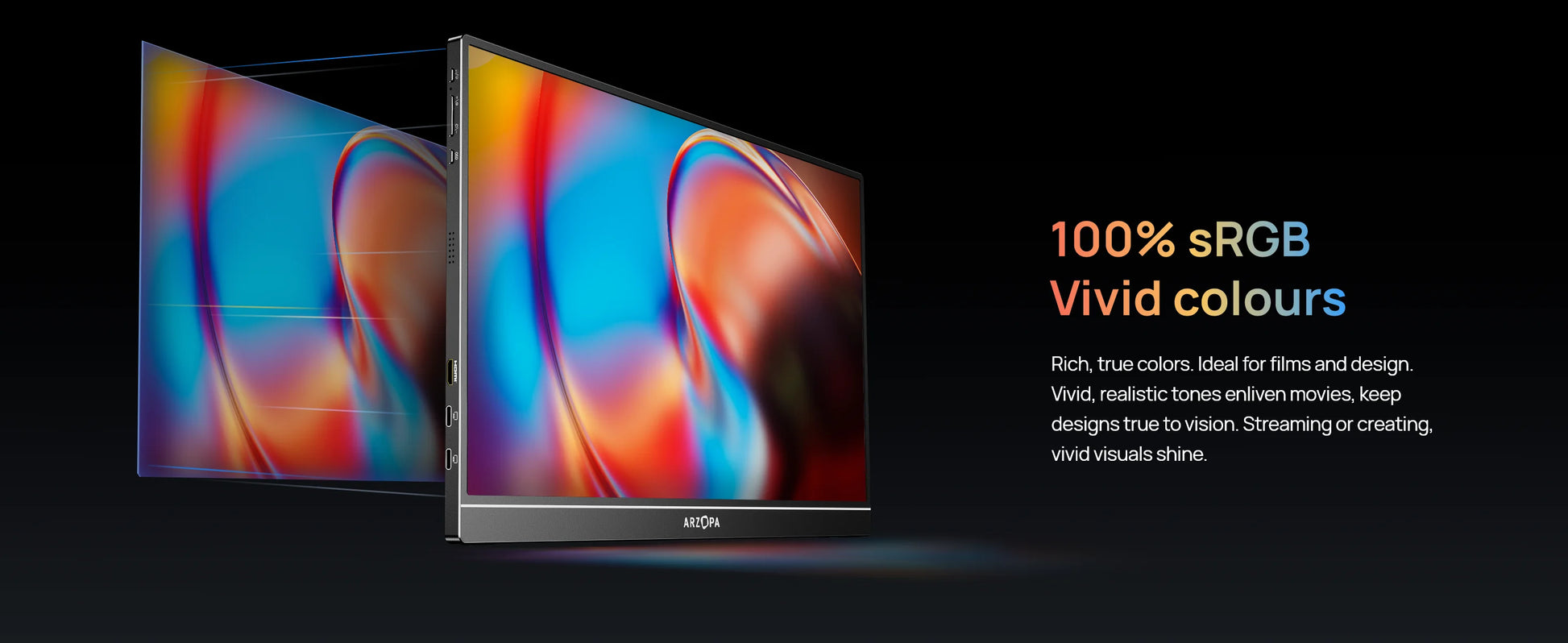 Equipped with FHD resolution, 16.7 million colors, and 100% sRGB gamut, it delivers sharp,