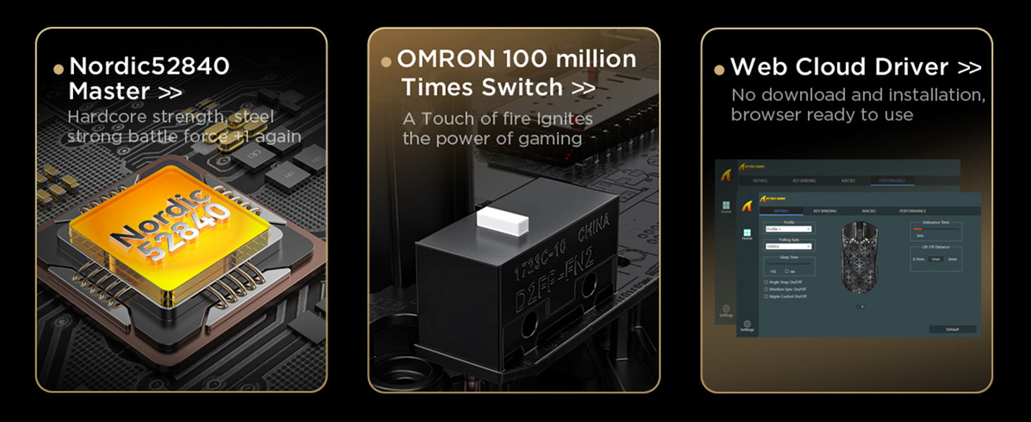 No downloads required - intelligent web-based driver auto-detects devices, offering DPI adjustment, rate of return, competitive mode, customized buttons, macro recording, personalized key mapping and other advanced functions. Perfect for pros and casual gamers alike.