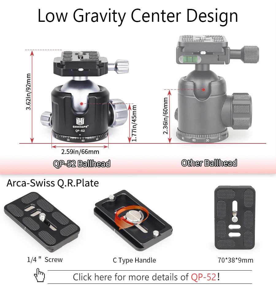 ✔Extension Hole: The carbon fiber tripod has a 3/8" screw hole in main body and comes with a conversion 3/8" to 1/4" screw, so that you can add most divices on it.
