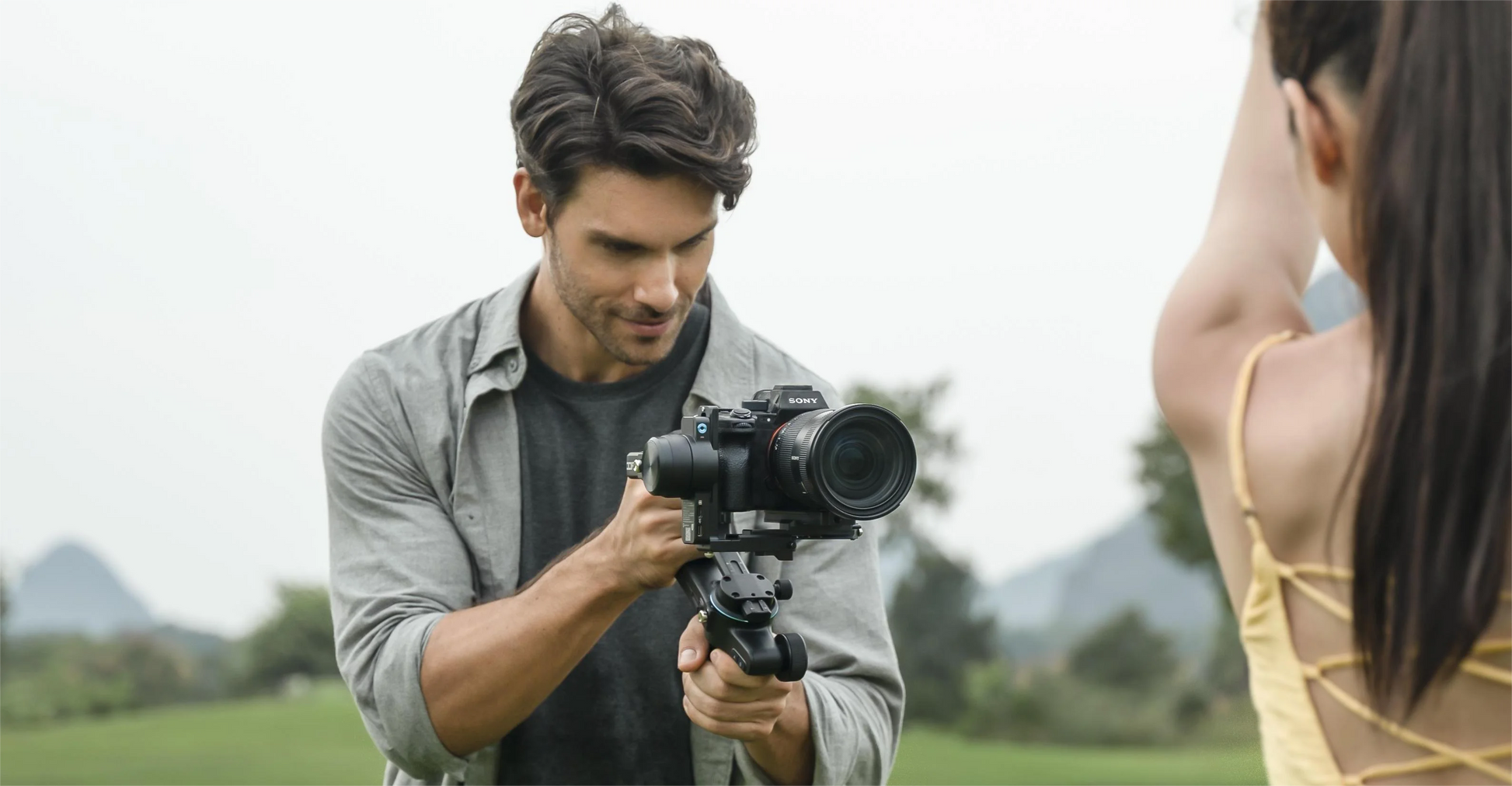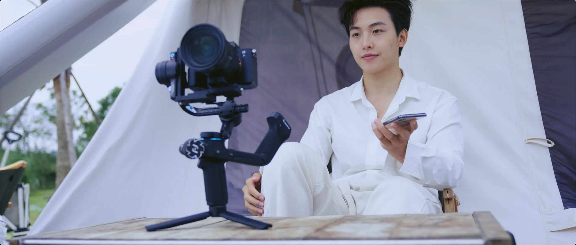The gimbal can connect to the camera either through a control cable or wirelessly via Bluetooth.