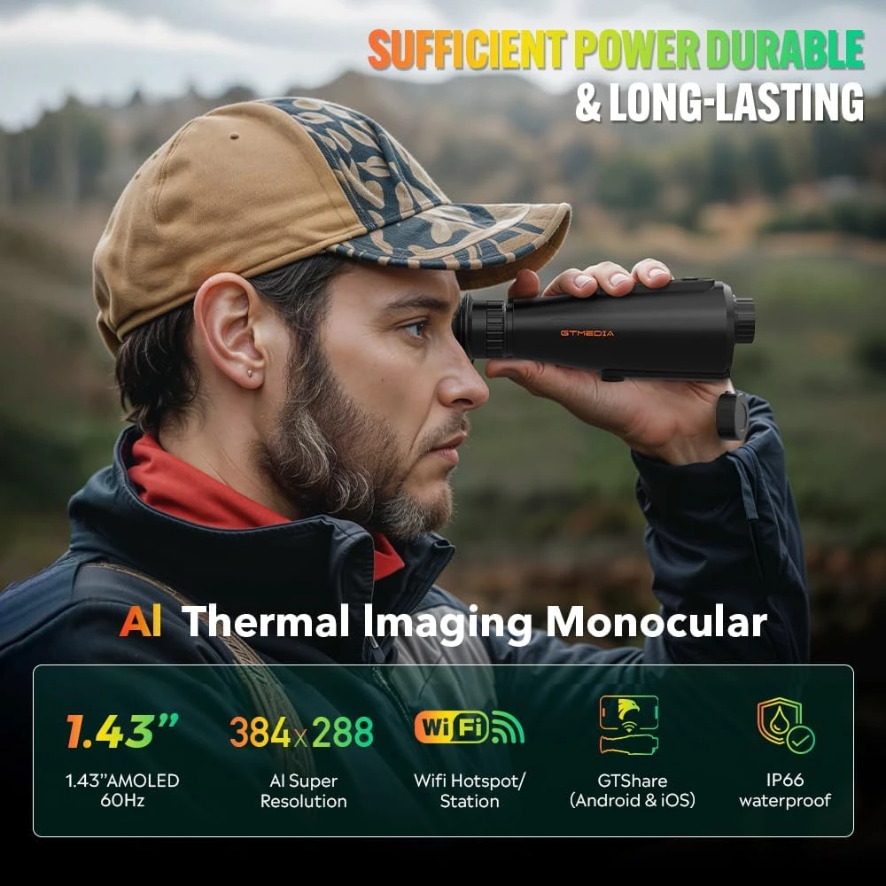 GTMEDIA Thermal Imaging Monocular AI Super-Resolution384*288 (50 Hz) 15mm /0.9 Lens Thermal Scope Outdoor IR Night Vision Goggle