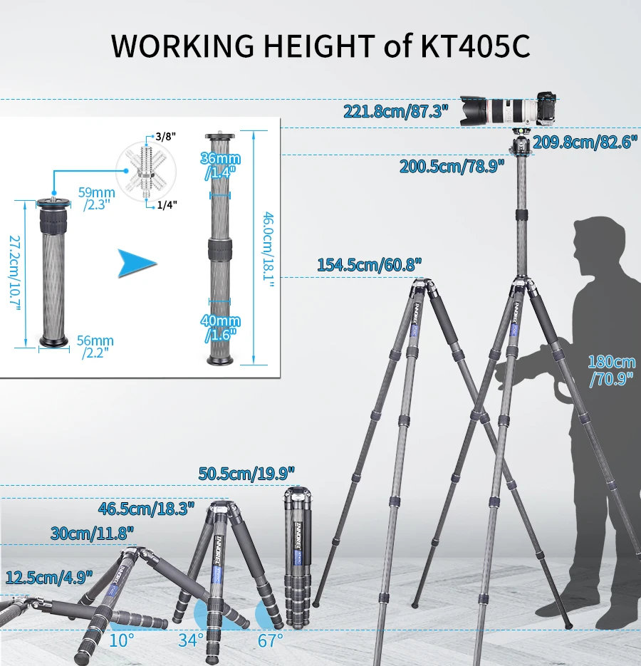 【2-Section Adjustable Center Column】Come with an external 2-section adjustable central column, you can get an extra height of 43.0cm/46.0cm, which can meet most photographer's need of shooting heights.
