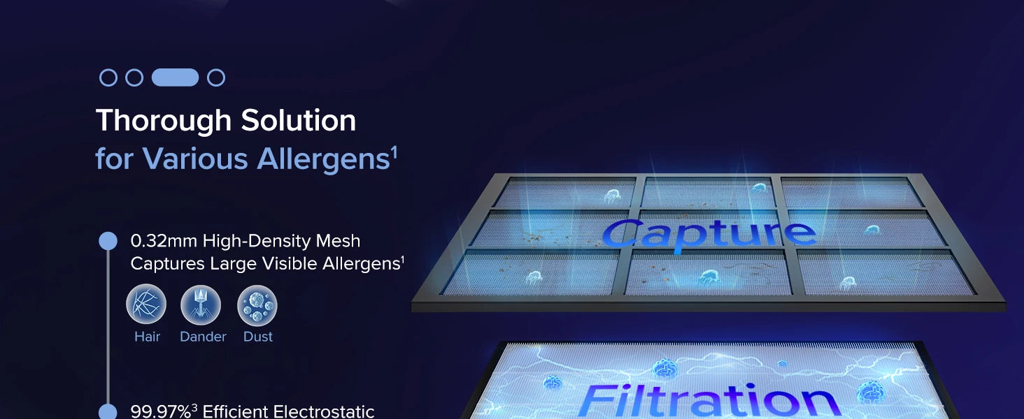 1. Independently lab-tested to filter allergens such as dust, hair, dander, smoke, pollen, and more.