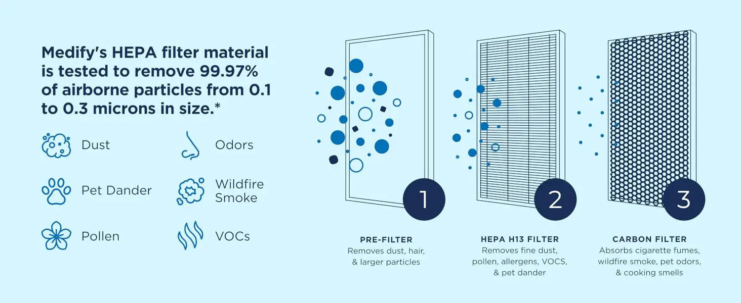 Inspired by parents who wanted to provide relief to their daughters suffering from asthma, Medify Air purifiers were engineered from the start with top-quality True HEPA H13 filters.