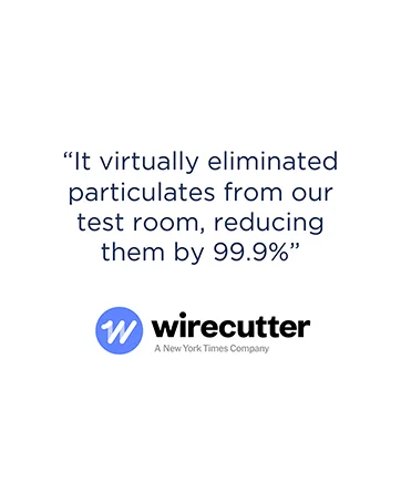 *Based on average CADR for pollen, smoke, and dust when operating at highest fan speed. Assumes closed room with 8-foot ceiling. Tested by Intertek Lab for HEPA filter material.