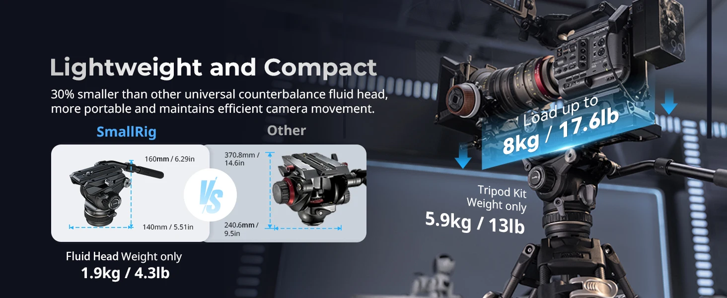 SmallRig AD-120 FreeBlazer Counterbalance Carbon Fiber Video Tripod Kit, 77" Video Tripod with 6-Step Counterbalance, Adjustable