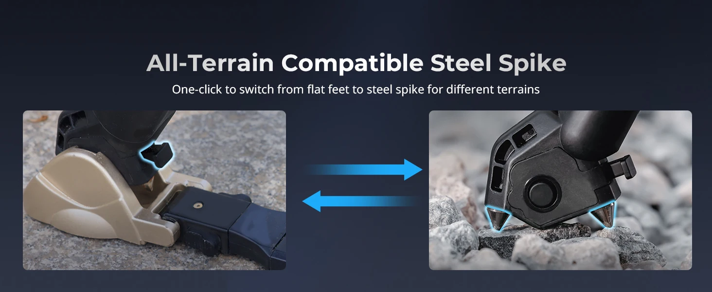 5. Interchangeable ground and mid-level spreaders, flat and spike feet