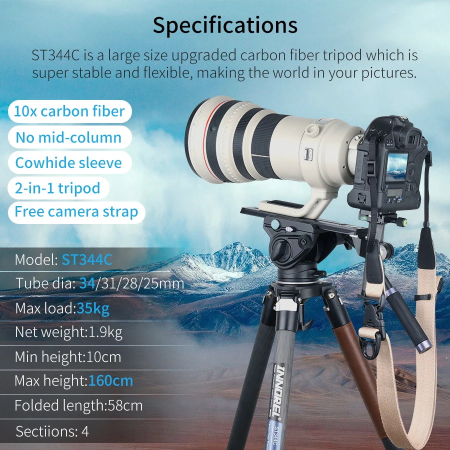 ST344C Professional Carbon Fiber Tripod Monopod With Ballhead Fluid Head For Digital Camera DSLR Max Load 35kg 75mm Bowl Adapter