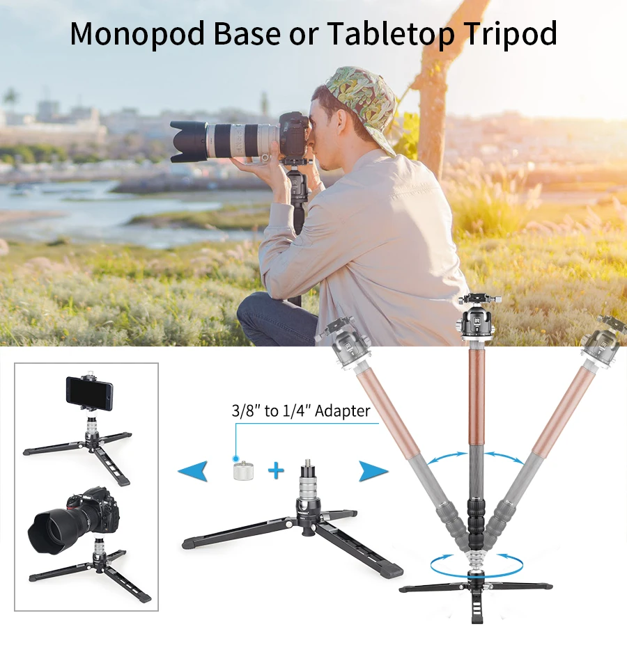 【Excellent manufacturing】All the main parts of this tripod are made via CNC and Anodic Oxidation technology, which makes the surface much prettier and the color more well-distributed and exquisite, refusing to fade.