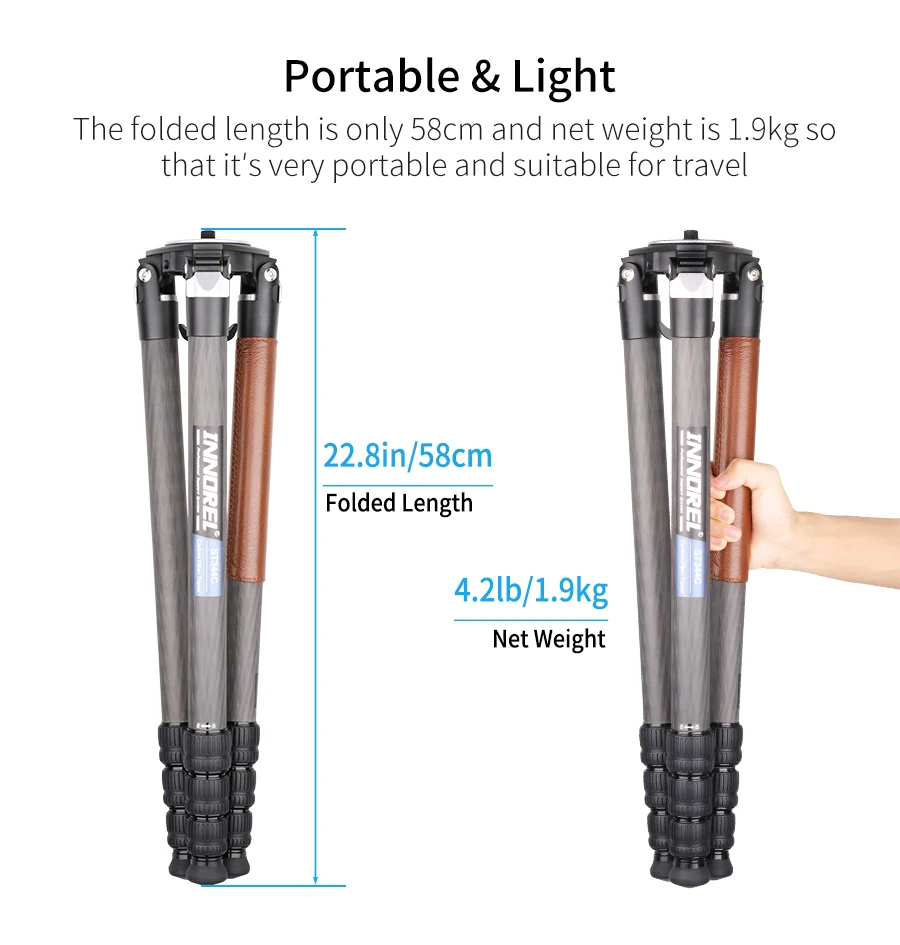 【Portable & light】the folded length is only 58cm and the net weight is 1.9kg, so it is very portable and light , you can take where you want.