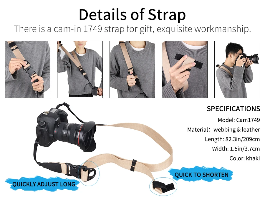 【Free Camera Strap】Together with a high-quality cam-in 1749 camera strap as a gift.