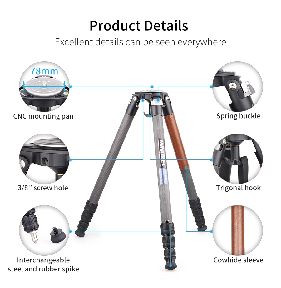 【Genuine 10 layers carbon fiber】This professional birdwatching tripod is made of high quality genuine 10 layers carbon fiber which makes it superior stable and light.